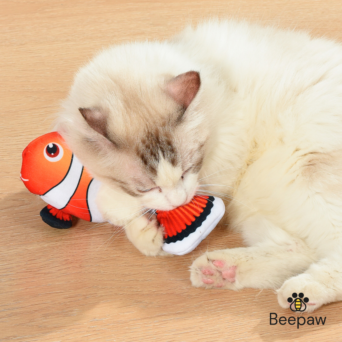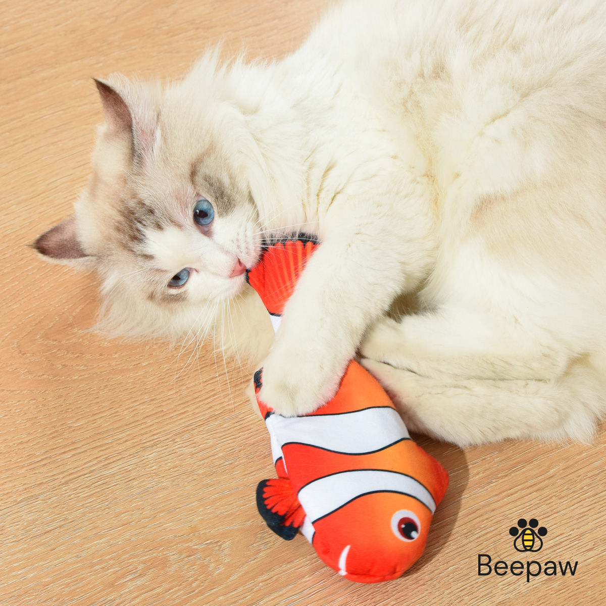 Hecho de tela de algodón duradera y poliéster, es suave, cómodo, no tóxico y seguro para morder, masticar y patear. El motor es extraíble para una limpieza fácil.